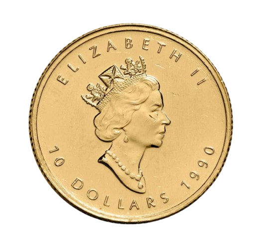The design for the gold maple leaf blends elements from Canada's proud heritage. Every maple leaf coin is guaranteed by the Government of Canada for its weight and purity. As a result, maple leafs are extremely liquid, easily bought and sold anywhere in the world where precious metals are traded. In Canada, the Maple Leaf is considered to be legal tender and are minted with values of 50¢, $1.00, $5.00, $10.00, $20.00 and $50.00. These values are determined by the 1985 Canadian Currency Act and the Royal Canadian Mint Act of 1985, which states that although the coins are ‘non-circulating Bullion coins’, they can still be used as legal tender.