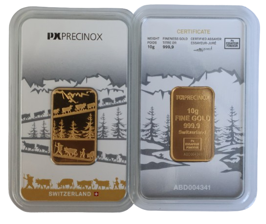 The PX Precinox La Poya Minted Gold Bar is a Swiss-made investment bar that stands out because of its special design and high-quality craftsmanship. PX Precinox SA is a Swiss refinery and precious metals manufacturer based in La Chaux-de-Fonds, Switzerland. Refiner and affiliate member of the LBMA, and holds world-recognized “FAIRMINED” and “SBGA” certification.