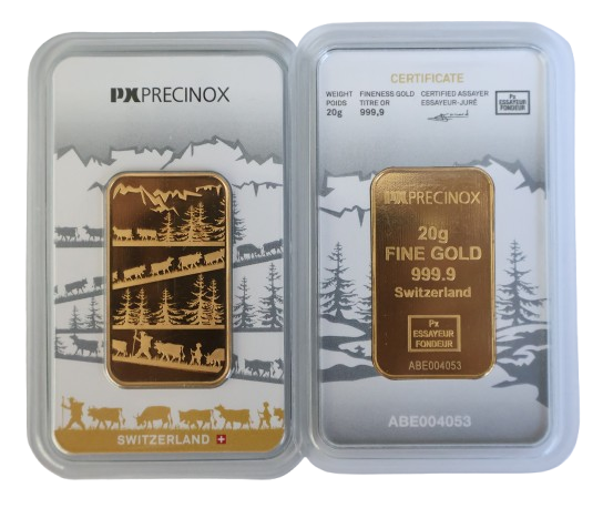 The PX Precinox La Poya Minted Gold Bar is a Swiss-made investment bar that stands out because of its special design and high-quality craftsmanship. PX Precinox SA is a Swiss refinery and precious metals manufacturer based in La Chaux-de-Fonds, Switzerland. Refiner and affiliate member of the LBMA, and holds world-recognized “FAIRMINED” and “SBGA” certification.