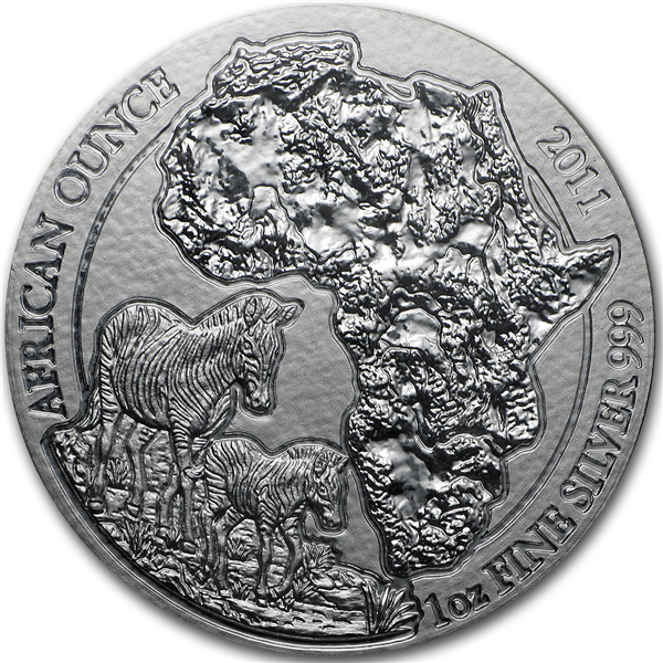 SILVER RWANDA AFRICAN ZEBRA COIN 2011-1 OZ