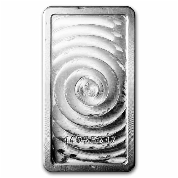 - Reverse (Back) :  feature a swirling pattern throughout the sunken area. At the center of this swirl pattern, you will find the image of the Scottsdale Mint logo with an inscription that identifies where the silver bars were produced.